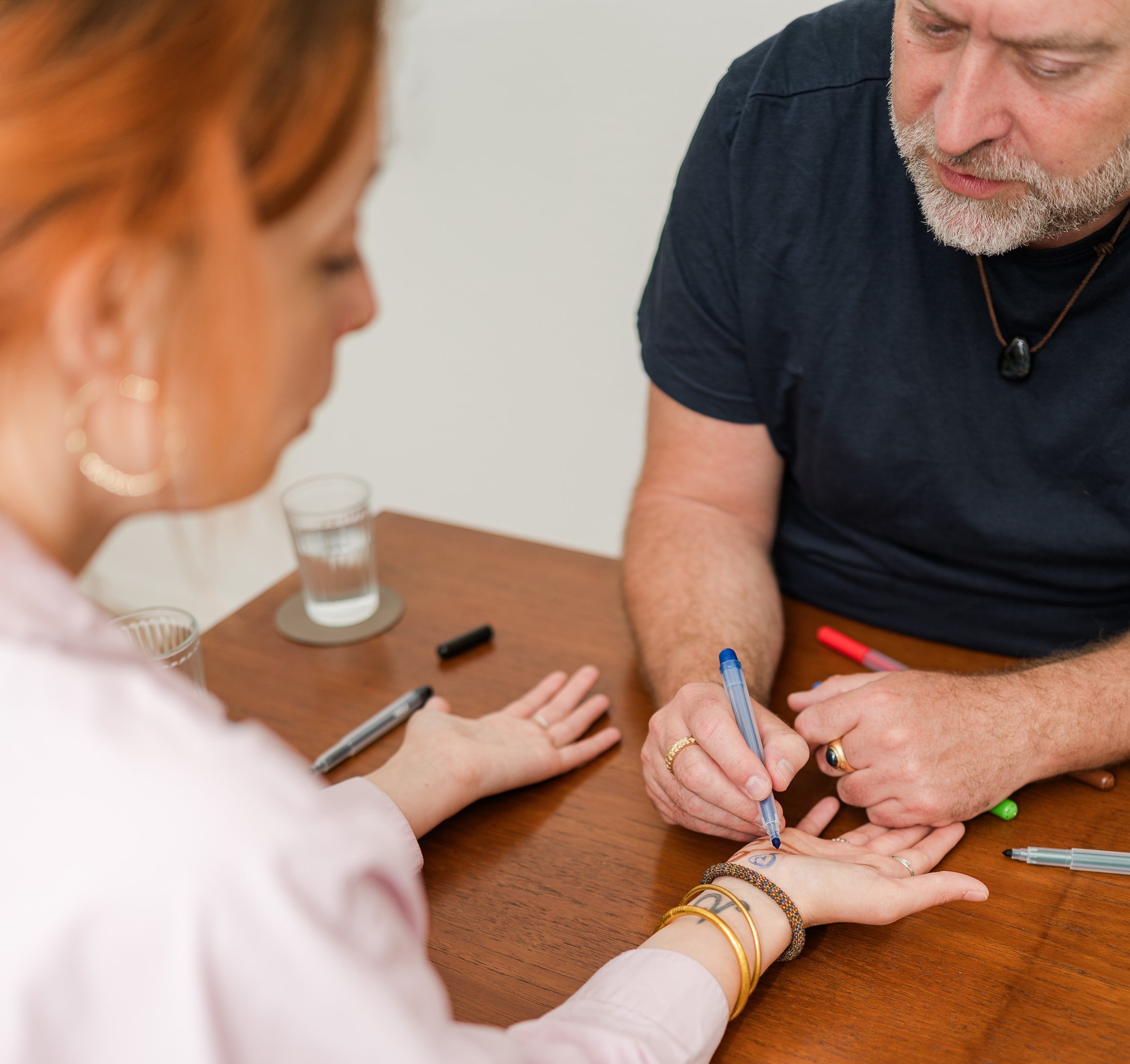 Gennem håndlæsning og blindtegning får du mulighed for at møde dig selv på et dybere plan – og opdage sider af dig selv, som måske længe har ligget skjult.